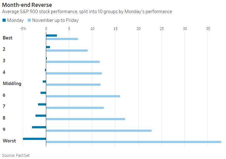 先来看美国股市。受抗疫封锁措施影响一度惨遭血洗的股票在11月份录得巨大涨幅,同时共同基金也不再把大量现金都拿在手上。