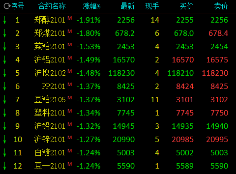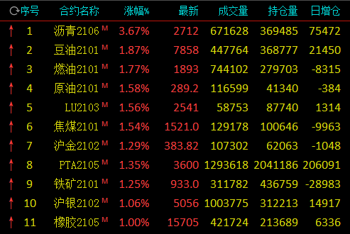 热点栏目12月3日,国内期市早盘涨跌不一,沥青涨近4%,燃油涨近2%,甲醇跌近2%;黑色系分化,焦煤、铁矿石涨逾1%,动力煤跌近2%;农产品中,豆油涨近2%,菜粕、豆粕跌逾1%;有色普跌,沪铝、沪镍跌逾1%;贵金属均涨逾1%。