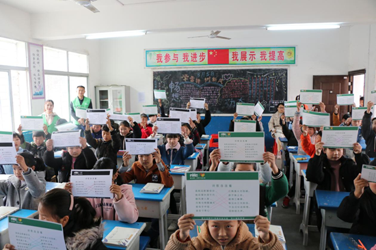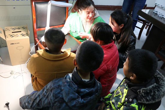 雷士照明“光明行”志愿者现场教孩子如何使用护眼台灯