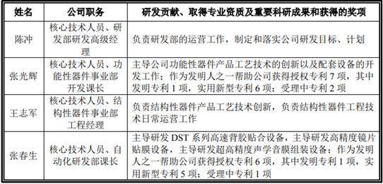 达瑞电子核心技术人员共4人,分别为陈冲、张光辉、王志军、张春生。