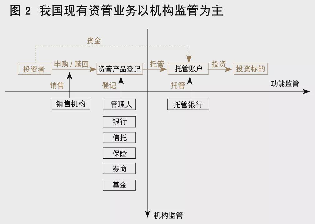 功能监管的目标对象与机构监管不同。机构监管的重点是市场准入的牌照管理以及对经营机构资本充足率、流动性水平、杠杆水平、盈利能力的审慎监管,重在强调金融机构的稳健性;而功能监管的目标是投资者权益保护,强调投资者适当性管理和产品信息披露质量。如果说机构监管是纵向的监管,功能监管则是横穿资管产品全生命周期、跨行业、跨市场、跨机构的监管。