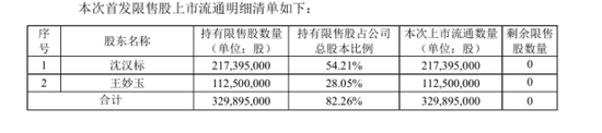 好太太首发解禁洪流来袭:占总股本82.26%