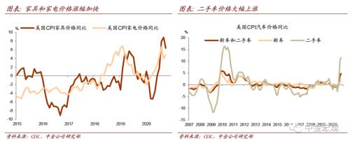 在家办公需求推动家具、家电价格上涨。10月份,美国CPI家具价格同比增长6.4%,家电价格同比增长4.8%,高于整体CPI涨幅。