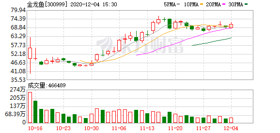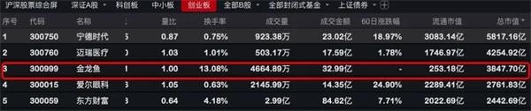 上市以来,金龙鱼股价已涨176.15%,市值达3848亿元,位列深交所创业板股票总市值第3。
