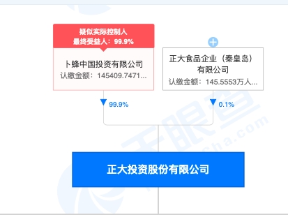 天眼查显示,正大投资大股东为卜蜂中国投资有限公司,持股比例为99.8%,正大食品企业(秦皇岛)有限公司持股0.1%,公司法人为谢吉人。正大投资隶属于泰籍华人谢易初于1921年创办的知名跨国企业正大集团,谢吉人是正大集团第三代领导人。