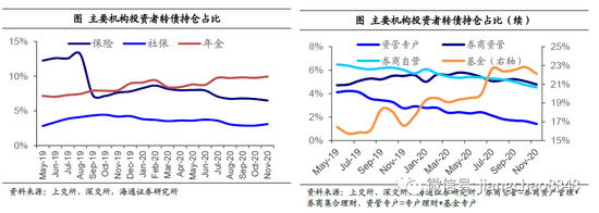 从持有人占比情况来看,基金11月末占总持有金额比例的22.12%,环比有小幅下滑,持有转债较多的机构其次为年金及保险,分别占9.93%及6.5%,占比环比分别提升0.15个百分点及减少0.21个百分点。