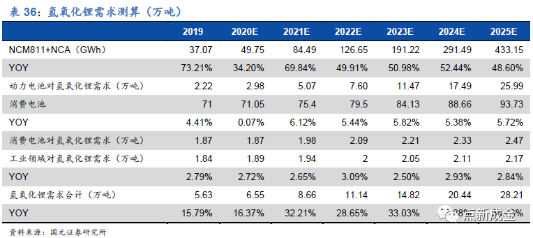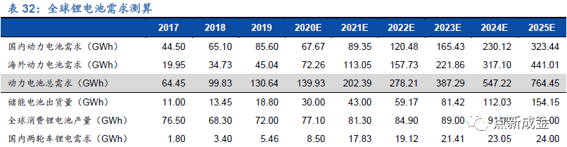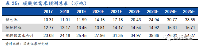我们预计2020年碳酸锂需求为14.2万吨,至2025年锂电池市场对碳酸锂的需求将达到38.6万吨,CAGR约为22%。
