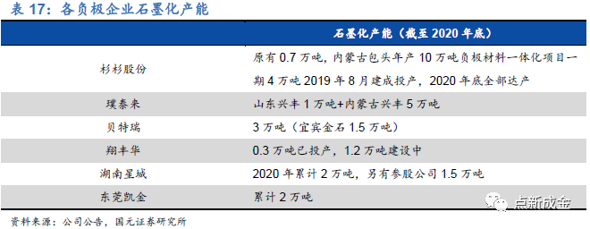 石墨化自给率提升,成本下降。石墨化在人造石墨负极材料成本占比超过30%,是人造石墨的重要加工环节,负极材料企业主要以委外加工的方式生产。随着负极材料厂商的人造石墨其他工序逐渐成熟,石墨化工序的质量决定人造石墨产品的质量稳定性,下游锂电池客户往往也对负极材料厂商提出石墨化加工能力的保障要求。为保证供应链安全及客户产品质量的稳定性,建立可控的石墨化加工配套产能,完善负极材料产业链,发展布局自由石墨化工序成为趋势,如杉杉股份2019年在郴州、内蒙古新增4万吨产能,贝特瑞2019年在山西新增3 万吨产能,凯金新能源2019 年在内蒙古新增1万吨产能等。