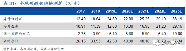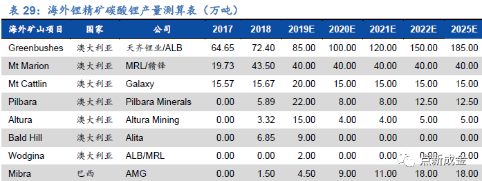 预计2020年海外锂精矿碳酸锂产量将首次出现同比下降,随着2020年下半年锂盐价格逐渐上升,海外锂精矿碳酸锂产量供给将于2021年逐渐恢复。