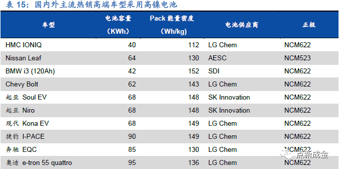 海外高镍趋势确定,全球渗透率持续向上。从车企来看,目前已知较为明确的大众新车型2021年逐步使用高镍811,戴姆勒2021年同步导入孚能811软包电池。从锂电厂商来看,SKI于2019年从NCM622开始过渡到NCM811混合体系,2020年全部铺开为NCM811体系,预计2021年以后预计Ni的含量将达90%;LG当前以6系为主,并由622向712和811推进,圆柱811逐步开始量产。松下最早应用高镍电池给特斯拉供货,采用NCA体系,密度可达300wh/kg;三星SDI当前以方形铝壳NCM532/622为主;CATL18年下半年NCM622上量,19年下半年开始推811,811渗透全球领先。