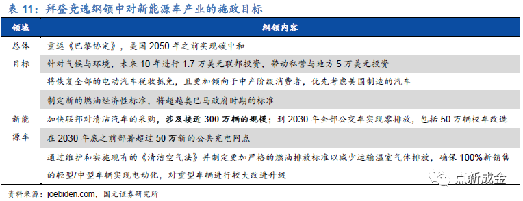 美国市场2021年有望进入政策红利期。美国通过税收抵免、研发支持、低息贷款和ZEV计划等措施推广新能源汽车。现行政策下特斯拉补贴逐步退出,提出的税收补贴新规草案《2019可再生能源增长法》,提出放宽补贴的总销量限制,并首次提出对二手EV与PHEV进行补贴,该案正在商议阶段。2020年6月通过为期5年的《投资美国环境和地面运输的新视野(美国INVEST)法案》,总额4,940亿美元,部分用于EV充电基础设施和零排放公交投资。总统竞选中拜登在新能源车方面提出的核心目标/方案包括,恢复税收抵免,其次提高燃油经济性标准,再次是加大政府采购及公共领域电动化,以及加快充电桩建设。