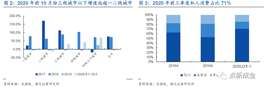 非限购城市新能源车销量增速更快,私人消费占比七成。非限购城市新能源车受政策影响较少,用户购车更多受使用需求驱动。2020年1-9月新能源汽车上险数59.6万辆,电动车私人消费表现亮眼,占比71%,相比2019年增加18.9个百分点。营运车辆9.24万台,占比15%,预计全年营运车辆同比减少40%。B端需求弱化主要原因在于2019年受地方出租车、网约车电动化政策刺激,占比大幅提升至28.8%;2020年由于疫情影响公共出行需求,需求大幅减少。
