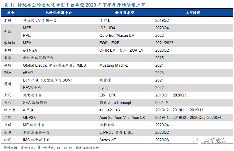 2021年欧洲与国内投放纯电车型数量较2020年翻倍增长,销量有望大幅增长。纯电平台后期将持续成为整车厂研发能力、成本、市场竞争的焦点所在。