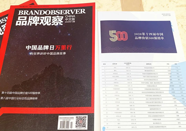 品牌价值500强榜单排名205位,连续11年蝉联行业第一!