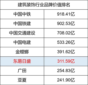 2020年东易日盛品牌价值311.59亿 蝉联行业第一