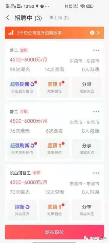 吴林提到,他们购买企业招聘账户后,还要花钱请人在招聘平台上代发招聘帖,“发招聘贴特别严格,发不好就封账号,发帖后,怎么能在平台上排到最前面,也是需要重点考虑的。”