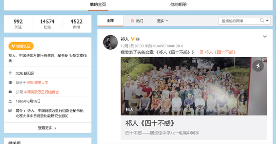 经认证的个人微博显示,12月3日上午7时,他还发文《四十不惑》,“假如重来四十年/笃定不惑的,是我们/热爱这世界的眷恋深情”。
