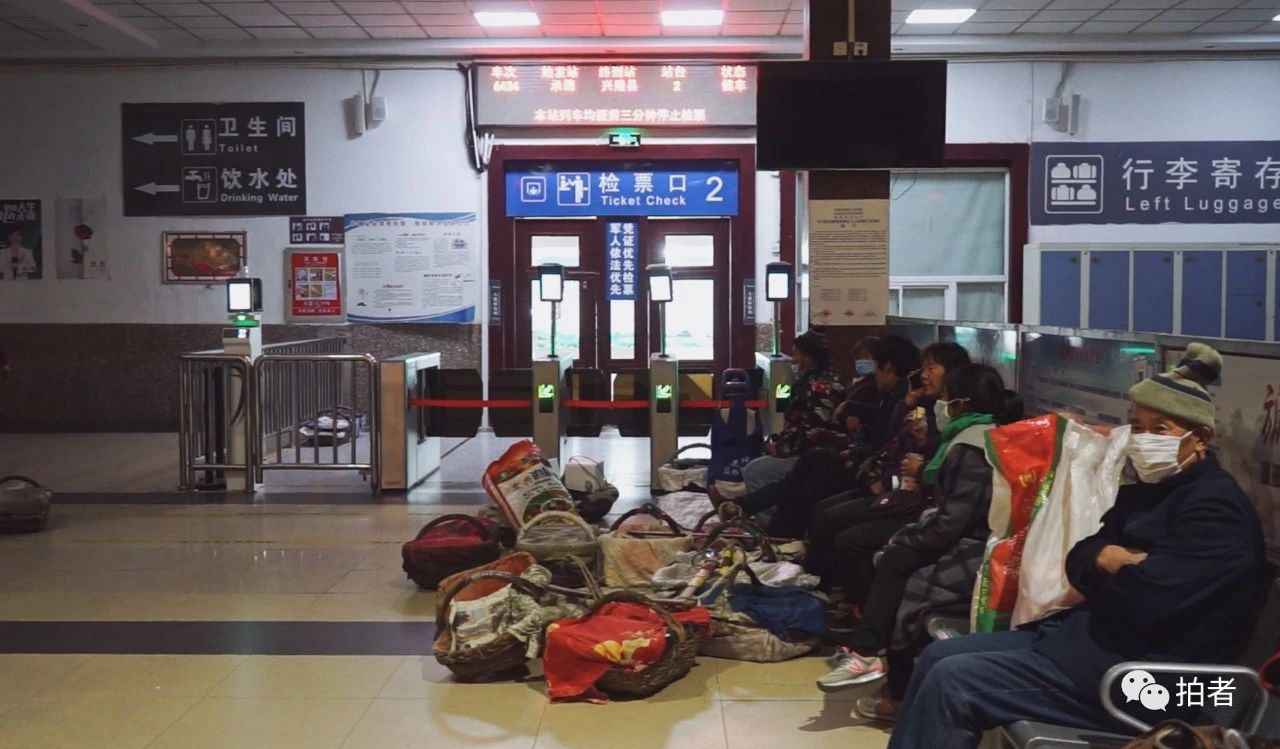 △11月10日傍晚,河北承德火车站,“大筐队”在站内等候,准备乘坐6434次列车回家。