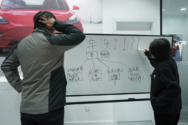 从图片来看,似乎有特斯拉店员在店内的白板上分析调查着什么,并排除了“内部调用”和“被偷”这两个可能性,剩下的两点可能就是“人工智能觉醒”和“马斯克的新计划”。有网友评论称,从现场抓头男人的“浮夸演技”来看,这恐怕又是特斯拉的一次预热宣传。那么,会是什么呢?智车派认为近期应该就会有答案。