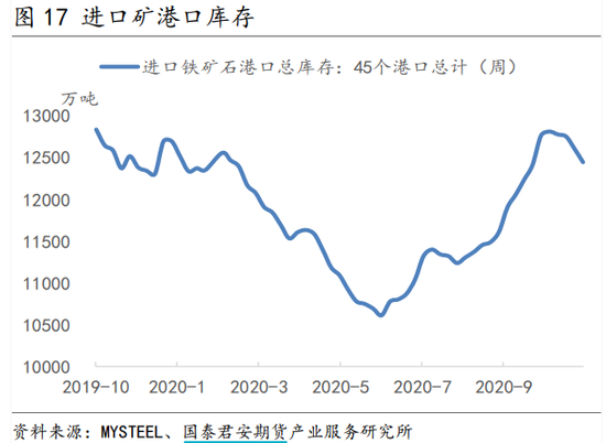 国内方面,今年1-10月国内进口铁矿石9.75亿吨,同比增加11.2%,进口均价为683.3元/吨,同比上涨3.8%;其中6~10月连续5个月铁矿石进口量均突破1亿吨。随着时间的推移疫苗的接种,全球争先复工复产恢复经济,市场对矿石需求更向乐观转变。