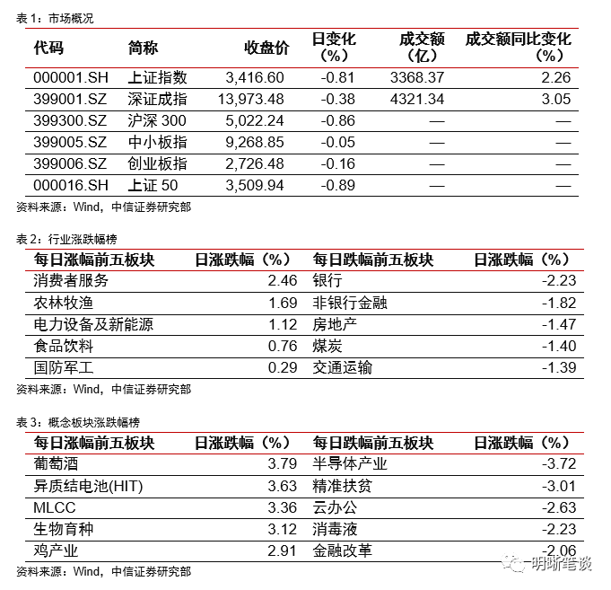 2020年12月7日,银存间质押式回购加权利率全面上行,隔夜、7天、14天、21天和1个月分别变动了26.84bps、2.9bps、5.84bps、4.09bps和42.9bps至1.35%、2.07%、2.07%、2.03%和2.73%。国债到期收益率全面上行,1年、3年、5年、10年分别变动-0.94bps、0.72bps、1.05bps、0.50bps至2.86%、3.04%、3.13%、3.27%。上证综指下跌0.81%至3416.60,深证成指下跌0.38%至14026.65,创业板指下跌0.16%至2726.48。
