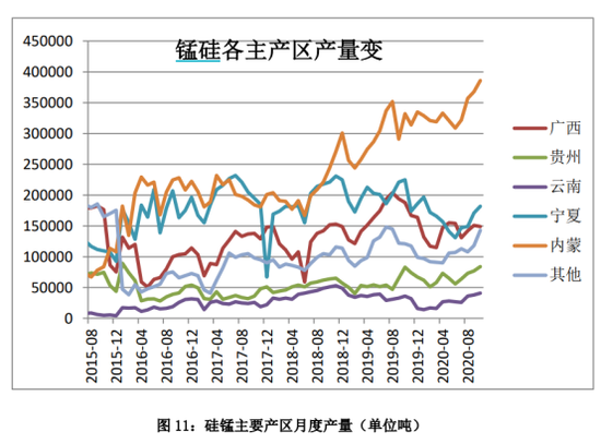 而在上周五,宁夏中卫地区突然发布限产文件,至明年三月上旬,对环保不达标的硅铁企业采取错峰生产措施。文件涉及硅铁企业11家,月产能4.4万吨,按目前宁夏地区46%的产能利用率计算,错峰生产预计影响月产量2.38万吨,占宁夏产量的26%,占全国产量的5%。