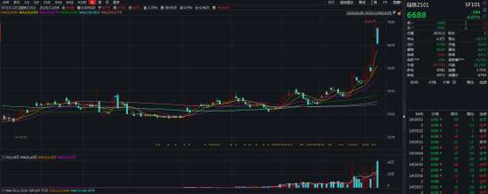 在限产消息传出之后,下午开盘硅铁主力合约直接封死涨停,而从目前硅铁的供需情况来看,随着海外需求的逐步复苏,硅铁出口和金属镁端需求开始回暖,硅铁的价格得到有力支撑,而此次传来的限产消息更是给本就向好的硅铁一剂猛药,刺激期价不断冲高。