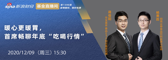 2020-12-09(星期三)15:30招商证券食品饮料首席分析师杨勇胜、华宝基金 食品ETF拟任基金经理蒋俊阳 直播分享主题:暖心更暖胃,首席畅聊年底“吃喝行情”
