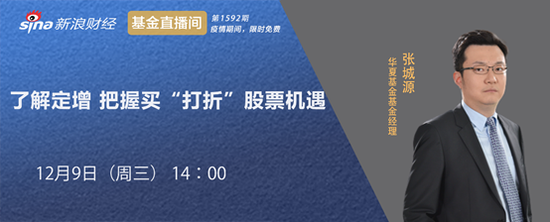 12月9日 14:00 华夏基金基金经理张城源 直播分享主题:了解定增 把握买“打折”股票机遇