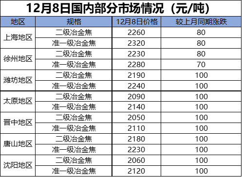 焦炭市场也继续涨价行情,9月份以来价格只涨不跌,山西市场均价累计涨幅近16%。今日的焦炭市场涨后偏强运行,目前山东港口一级焦贸易现汇出库价格在2480元/吨,较前日上涨20元/吨。