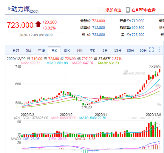 热点栏目12月9日,动力煤主力合约早盘不断拉升,现涨逾3%,报723元/吨。