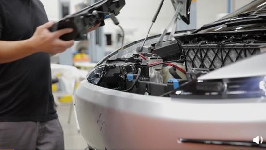 从此次公布视频来看,从白车身进入车间,到外饰、内饰、电池组等其他零部件的安装都是由工人们手工完成,工厂生产线的自动化程度看起来很低。