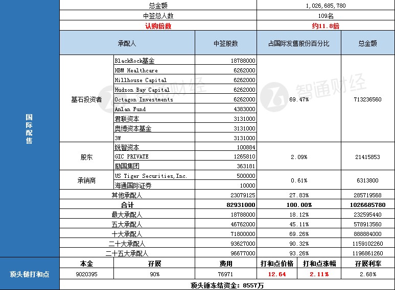 国际配售申购人数未披露,认购倍数约11.8倍。