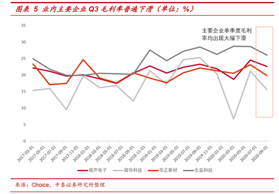 受上游原材料价格普涨影响,第三季度国内各大覆铜板厂商的毛利率水平纷纷下滑,盈利水平承压严重。