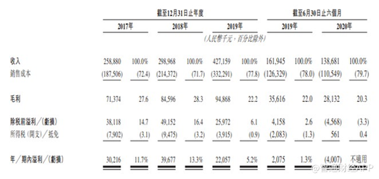 截至2019和2020年6月30日止六个月,该公司收入分别为1.62亿元人民币和1.39亿元人民币。毛利分别为3561.6万元人民币和2813.2万元人民币。毛利率分别为22%和20.3%。同期净利润分别为207.5万人民币和负400.7万元人民币。