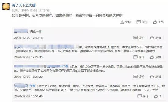 另外,上午一张截屏流传甚广,有投资者自称融资盘已爆仓,倒欠券商200万。