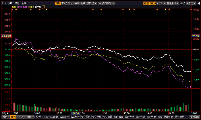 指数方面,开盘小幅冲高后进入单边回落状态,尾盘半小时还出现一波小跳水,加大了筹码交换程度。