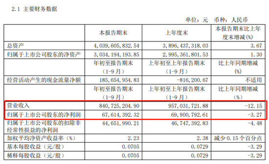 但是此前亚星锚链披露的三季报显示,前三季度公司营收和净利润双降,实现营业收入8.41亿元,同比下,降12.15%;归属于上市公司股东的净利润6761.44万元,同比下降3.27%;基本每股收益0.0705元。