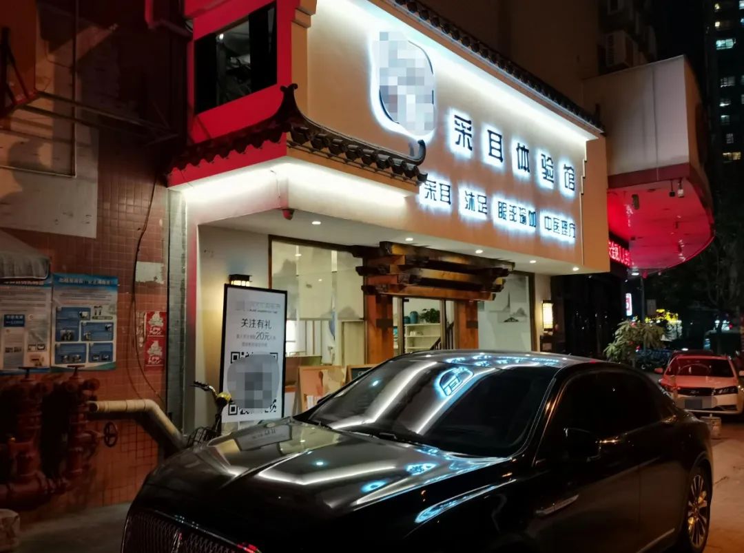 采耳店门口停着高级轿车,看来有高端人士过来享受。
