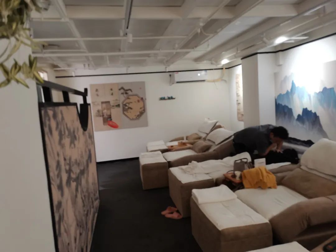这次我没有体验,死皮赖脸进去绕一圈就出来,一楼有3个人在按摩,二楼有2个人在拔火罐,一共5个客人。