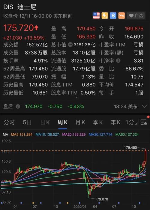 虽然乐园业务依然面临较大下滑,但迪士尼的流媒体业务太强了,近期,迪士尼股价不但收复疫情以来的全部失地,还创下历史新高。