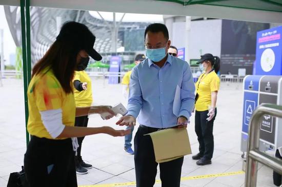 为保障2020南山半马启动仪式的顺利举行,在疫情防控方面,组委会制定了专业防疫方案。活动前一天晚上,对主会场和起终点区域进行全面消毒。各个工作区均摆放足量的免洗手消毒液,供现场所有人员使用。在疫情防控区入口处及主会场与起终点之间通道处,铺设消毒地毯,定时洒上消毒液。在选手领物参赛包里面均提供了一只单包装口罩。为降低起跑区选手密集程度,将采取分区分时的方式起跑。选手除在跑步期间之外全程必须佩戴口罩,全程均有志愿者负责监督。