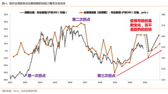 (2)顺周期风格短期调整后,后续趋势大概率还没有结束。从基本面的角度出发,国内信用周期领先于国内经济周期大约2-3个季度,信用周期10月见顶,对应国内传统经济周期大约明年2季度左右见顶。因此,从相对业绩趋势的角度,至少到明年一季报,沪深300为代表的顺周期方向的业绩大概率占优。对应风格上,沪深300占优的趋势尚未结束。