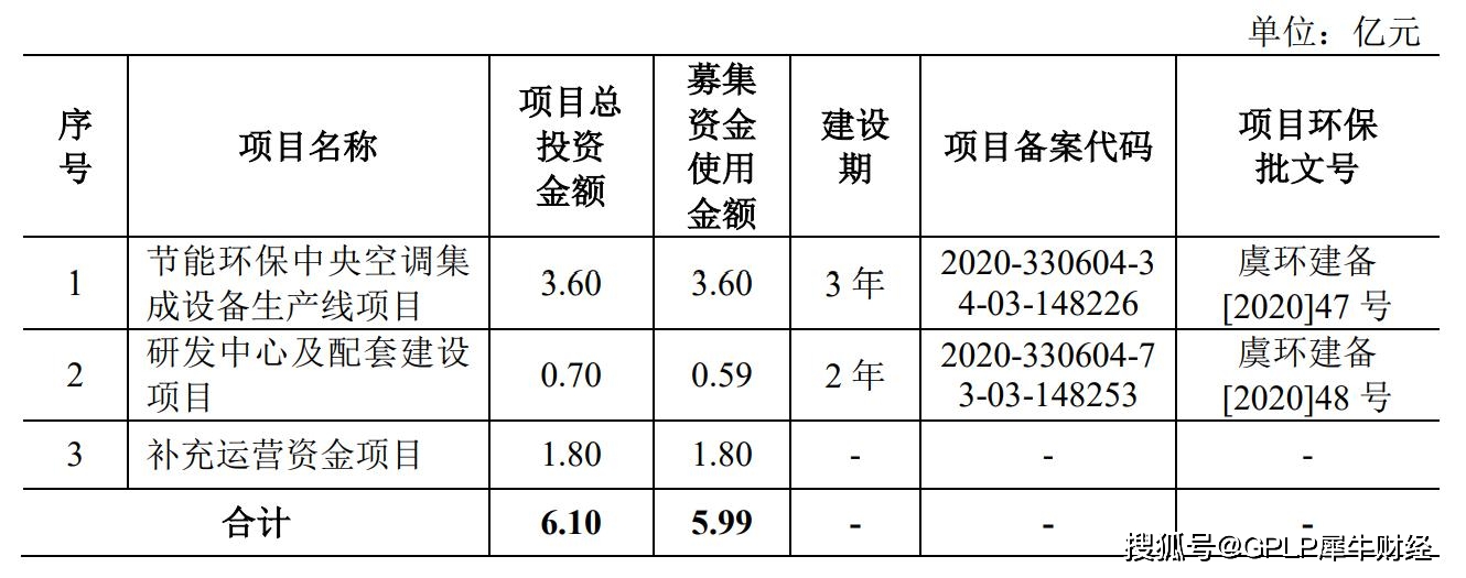 据悉,浙江国祥本次拟发行股票不超过3502.34万股,拟募集资金约5.99亿元,将用于节能环保中央空调集成设备生产线项目、研发中心建设以及补充运营资金。