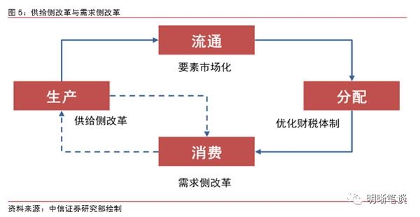 经济循环的两端:供给侧改革与需求侧改革。供给侧改革与需求侧改革分别对应社会经济循环的起点和终点,二者发力点并非完全相同,供给侧改革更加注重优化生产结构使其匹配终端需求,而需求侧改革则反之,重点在于优化国内需求结构并扩大内需潜力,但二者也并非完全割裂,现实中往往相互影响。
