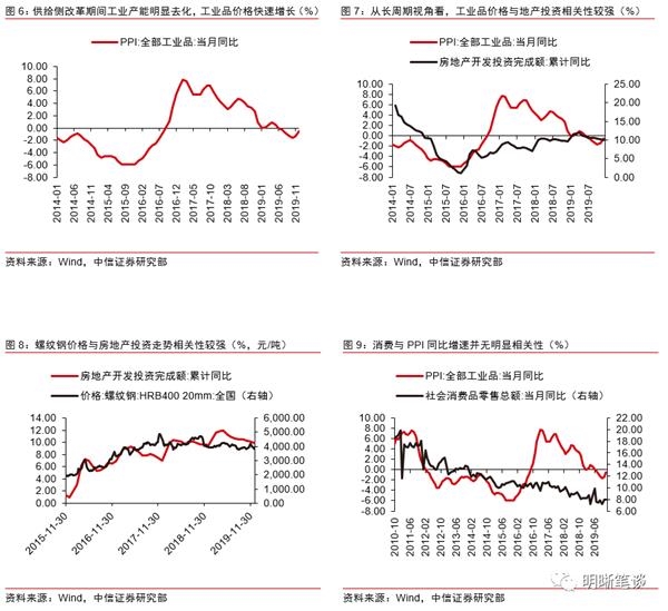 结合当前需求侧改革的政策思路,预计地产、基建等强刺激政策的退潮将在一定程度上弱化需求扩张对中上游工业品价格的提振效果,而政府对供需动态均衡的强调也可能意味着未来国内产出缺口的波幅也有望收敛,基于此,需求侧改革之下我国通胀或将维持在相对温和的水平,PPI快速上行的概率不高。在依赖地产+基建的传统需求刺激政策框架下,地产、基建投资加码将在一定程度上带动相关行业的产成品价格上行,比如我们可以看到,螺纹钢价格与房地产开发投资走势具有明显的相关性,同时历史上地产投资的上行周期往往也对应着PPI的景气阶段。但在以促消费为主的需求侧改革框架下,消费需求向工业品量价的传导更多体现为自下而上的传导链条,这种传导链条要更长一些,同时由于消费的顺周期特征,消费刺激政策力度要更为温和,对工业品价格的影响也可能不如基建、地产刺激政策那样剧烈,一个佐证在于居民消费与工业品价格的相关性并不算高。另一方面,本次政治局会议强调推动供需更高水平的动态平衡,这也意味着未来国内供需错配程度或将明显降低,产出缺口波幅收敛的同时,通胀水平也有望维持在相对温和的状态。