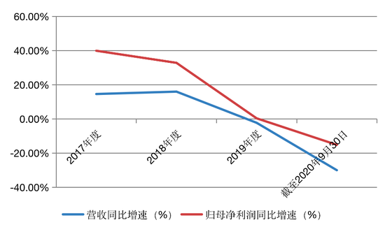 时至2020年9月30日,该公司业绩仍然没有好转,今年前三季度其营收录得22.06亿元,同比下滑29.98%;归母净利润录得3.17亿元,同比下滑15.14%。如果剔除非经常性损益,其扣非后归母净利润则进一步缩窄至2.91亿元。