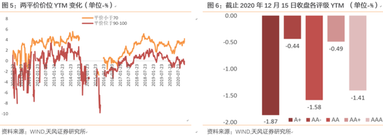 近期两个事件的发生对转债市场估值形成一定影响,鸿达兴业大股东短债违约事件之前,我国转债市场基本未出现过在流通转债相关发行人的债券违约现象,叠加今年上半年辉丰转债事件,市场对于转债发行人流动性情况更加敏感。截止到12月15日收盘,A+评级转债溢价率均值已较上周五下降4.3个百分点,到33.49%,同时期AA-/AA/AA+/AAA四个评级转均值分别下滑1.4/2.8/1.8/0.7个百分点。