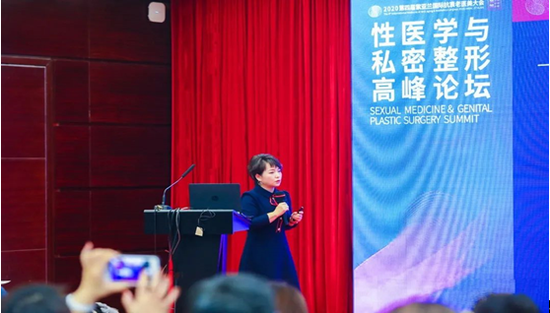 张鸿主任在性医学与私密整形高峰论坛上以《异种脱细胞真皮基质束带和微粒在女性阴道紧致的应用》为主题发表演讲,聚焦女性私密整形临床治疗中遇到的难点与问题,针对性地提出了系统化、科学化、权威化的解决方法,并以专业的知识和临床经验积累,从作用机理到实际案例进行了全方位的分享,阐述了私密第三代微创技术在女性私密问题的修复治疗上与联合治疗方案的实力与优势。