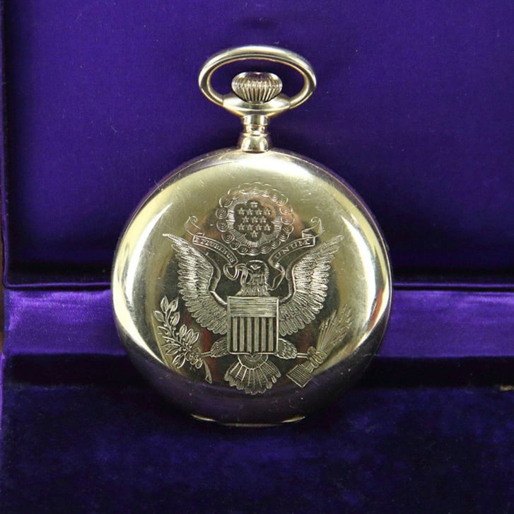 这块怀表是由14k的黄金制成的,价值约2.7万美元。表的正面刻有美国的白头海雕国徽,背面则刻有威尔逊的留言:“鉴于英国努比亚号轮船船长查尔斯·劳伦森,1914年3月7日在海上营救美国帆船船长茱莉亚·特鲁比和船员所提供的人道主义服务,美国总统特此表彰。”